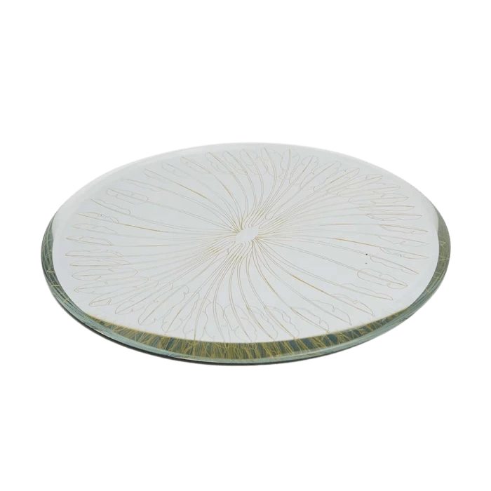 Masterly crafted, the Angelique round mirror plate features an intricate gold etched design which elevated this stylish, streamlined plate above the rest.