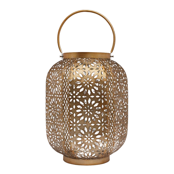 Introducing the Clarabelle Gold Round Lantern – the perfect addition to your home this Autumn and Winter season! This lovely little lantern is constructed from a sturdy metal, and features a beautiful gold finish that will add a touch of elegance to your decor. It is also designed to fit perfectly with pillar candles, making it even better suited for your home.