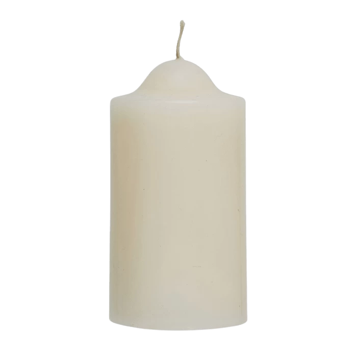 Ivory Unscented Pillar Dome Candle 80 mm in height and 50 mm across. Burns up to 25 hours.