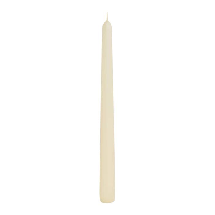 Ivory Unscented Taper Candle. Burn time up to 7 hours.