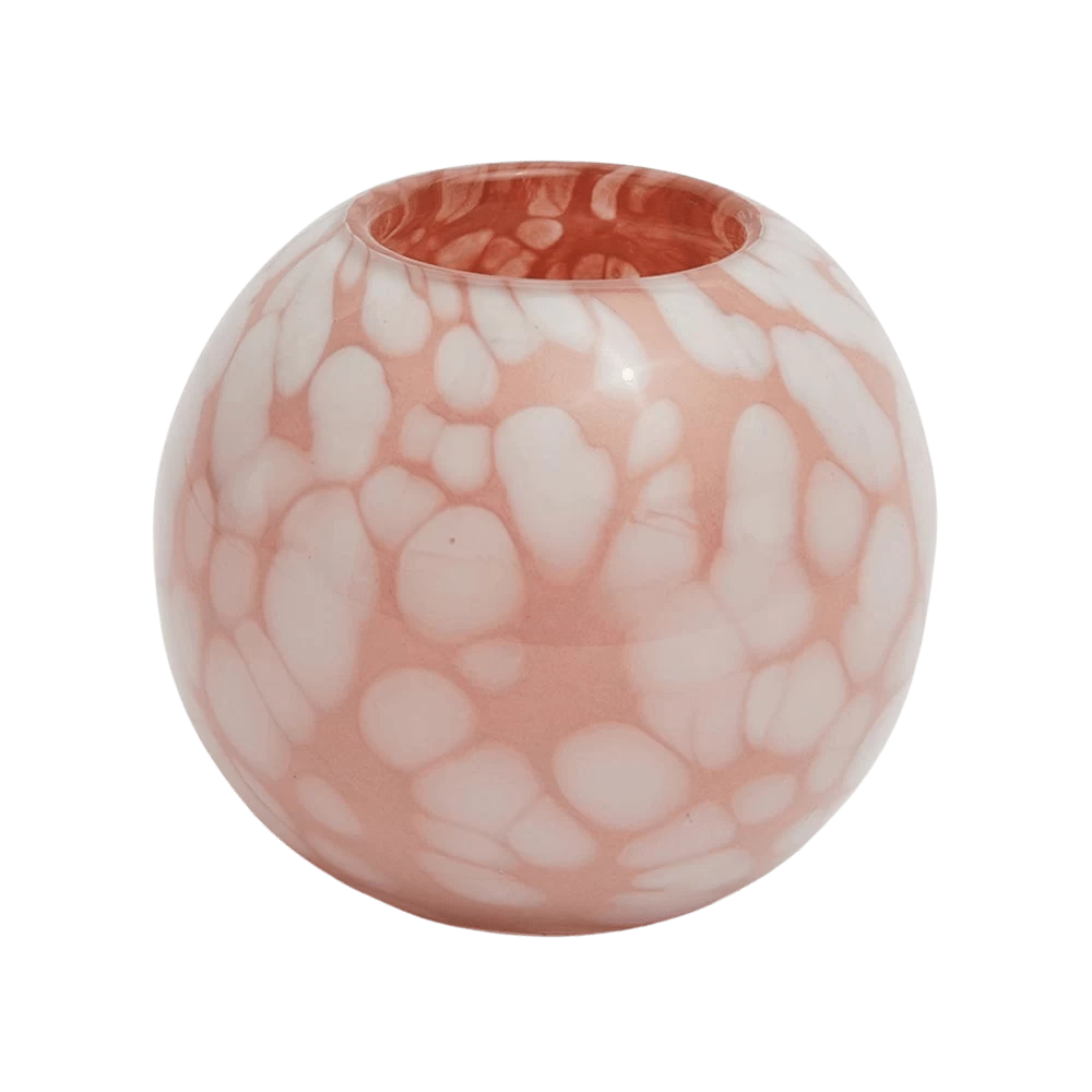 Illuminate your space with this masterly crafted, coral-inspired glass tealight holder. This round beauty in pale pink and white swirls will add a touch of whimsy to any room.