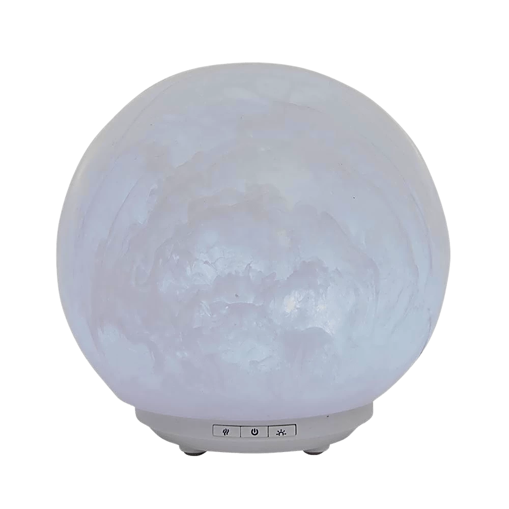 Streams of light filter through milky white resin in Polly White MoodMist® Diffuser. Organic swirls wrap around this glowing orb as aromatic mists diffuse, leaving your head in the clouds. Delicately paired with a discreet white base, this angelic diffuser will have you floating on cloud nine as it passively perfumes and illuminates your surrounds.