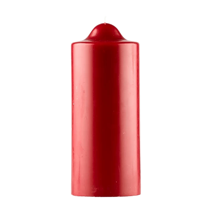 Red Unscented Pillar Dome Candle 160 mm in height and 76 mm across. Burns for up to 100 hours.