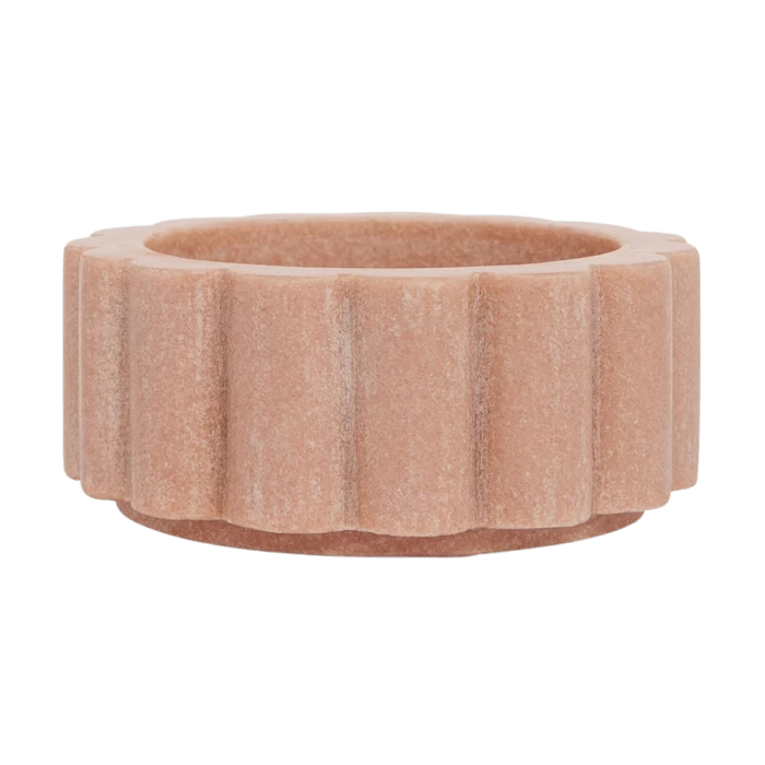 The Rosa Trinket Dish is an exquisite piece crafted from unique pink marble, featuring elegantly scalloped edge contours. This versatile dish makes for a perfect addition to your home décor, serving as a contemporary holder for your jewellery, keepsakes, and more.