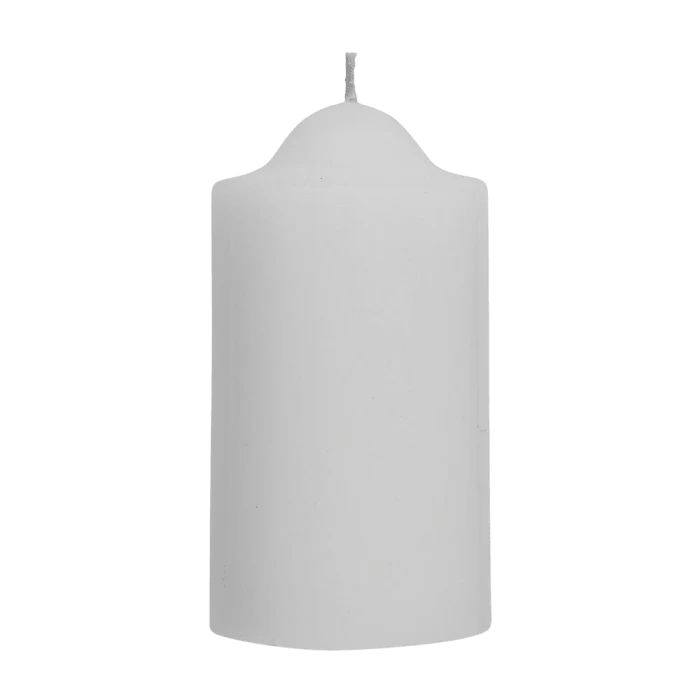 White Unscented Pillar Dome Candle 110 mm in height and 50 mm across. Burns up to 40 hours.